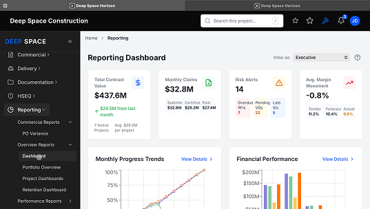Deep Space gives you live reporting built from real project activity. No extra inputs. No duplicate systems.